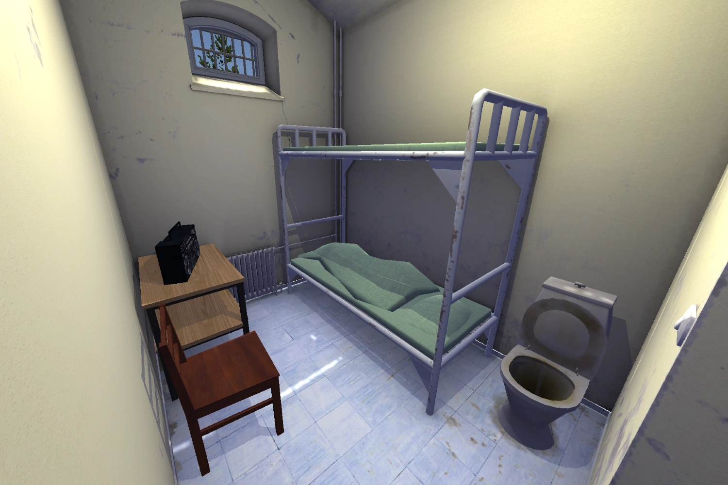 A bunk bed is two beds stacked on top of each other, allowing more prisoners to sleep in a smaller space.